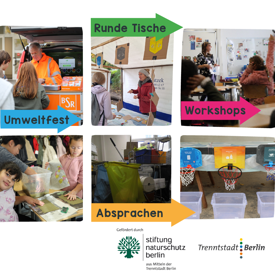 Abfalltrennung ist Klimaschutz: Mit einer besseren Abfalltrennung können jährlich Millionen Tonnen des klimaschädlichen Kohlendioxid eingespart werden. Um die Abfalltrennung an Schulen verbessert zu werden, nehmen wir die gesamte Schulgemeinschaft in den Fokus! So wurden seit 2024 plastikfreie Wochen durchgeführt, hat ein Infofest für 900 Schüler:innen die Einführung von Abfalltrennung begleitet, fanden viele Gesprächsrunden statt & wurde in Abfalltrennungsworkshops altes Papier als handlungsorientierter Schwerpunkt selbst recycelt.