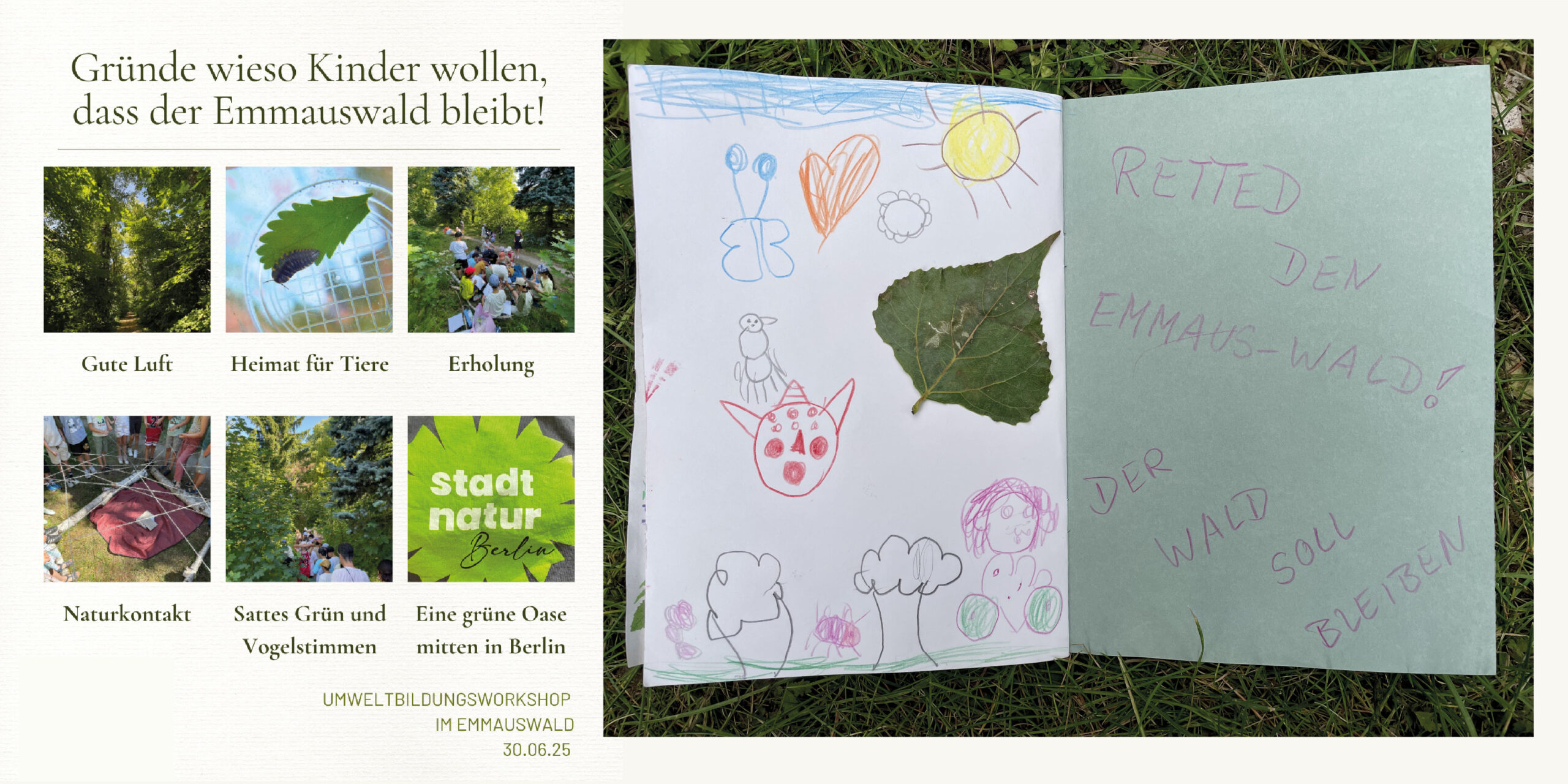 Dank einer Förderung der Heidehof Stiftung konnten wir 2025 in 50 Workshops mit Schulklassen & Kitagruppen, die Bedeutung von Natur in der Stadt anhand von Messungen, Beobachtungen & Zeichnungen dokumentieren.
